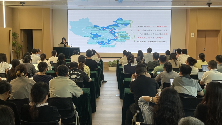 10月10日下午,2025年“宁馨家园·时代好声音”时事讲读进社区进企业活动在春秋航空总部举行。中共上海市委党校副教授、上海市习近平新时代中国特色社会主义思想研究中心研究员陈思作主题为《新质生产力培育:人工智能+战略下的组织变革与人才技能重构》的报告。
